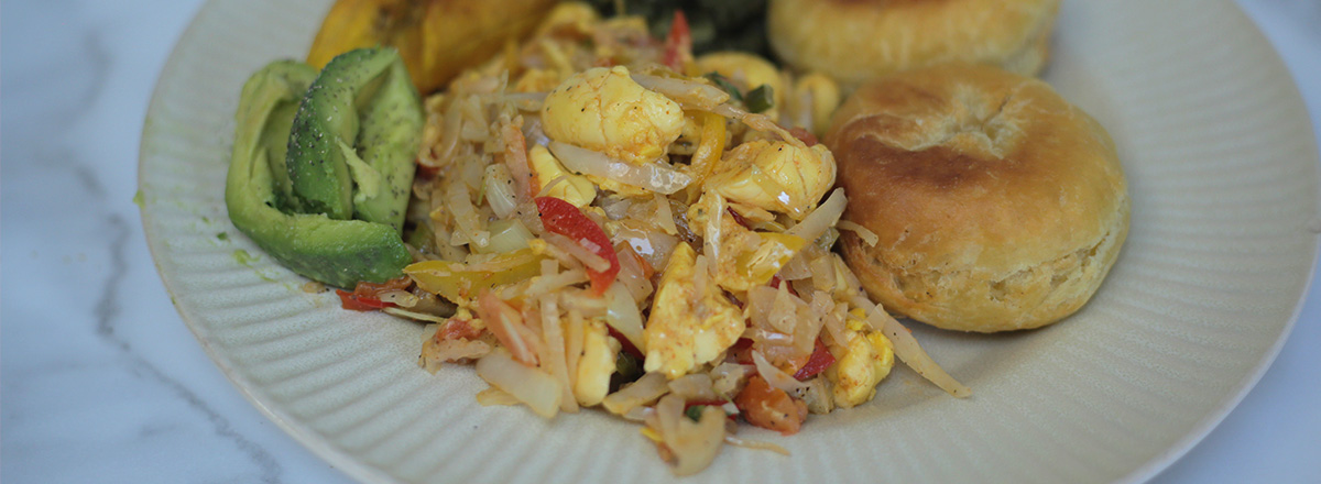 This recipe is inspired by Jamaica’s national dish, ackee and saltfish — but with a lighter twist. We replace the saltfish with white cabbage, which cooks down beautifully, giving a silky texture with a gentle crunch that pairs perfectly with the creamy ackee