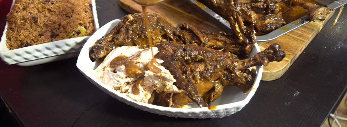 A Caribbean twist on the classic roast turkey. Dry-brined for flavour, finished with a rich jerk butter and roasted until juicy, golden and full of flava. Perfect for Christmas, special occasions and big family gatherings.